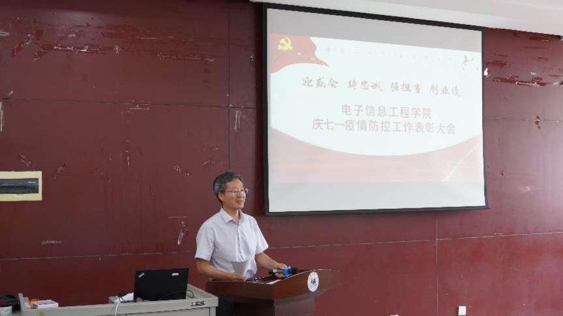2022年6月30日下午14:30,william威廉中文庆七一“迎盛会、铸忠诚、强担当、创业绩”疫情防控工作表彰大会在学院楼102举行。学院全体领导出席了大会,参与表彰的教职工及党员代表在102参会,其他教职工通过腾讯会议参会。大会由党委副书记兼副院长张信主持。