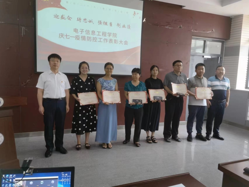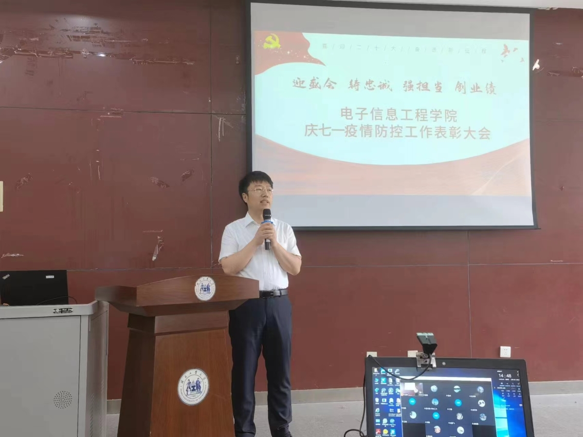 2022年6月30日下午14:30,william威廉中文庆七一“迎盛会、铸忠诚、强担当、创业绩”疫情防控工作表彰大会在学院楼102举行。学院全体领导出席了大会,参与表彰的教职工及党员代表在102参会,其他教职工通过腾讯会议参会。大会由党委副书记兼副院长张信主持。