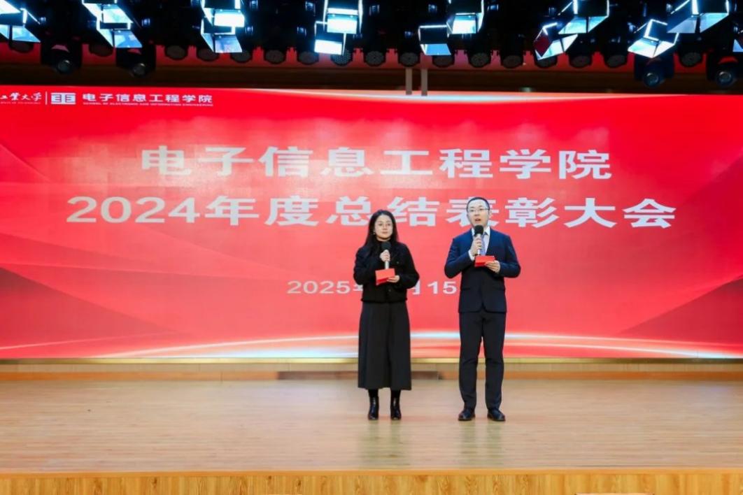 周亚同副院长宣读了《william威廉中文关于表彰2024年度优秀集体和个人的决定》,决定对通信工程系等15个集体、杨学莉等96名个人进行表彰,希望全院师生以受到表彰的集体和个人为榜样,秉承“勤慎公忠”校训精神,立足本职岗位,勇于担当作为,为学院事业建设发展贡献力量,奋力谱写新时代学院高质量发展的新篇章。