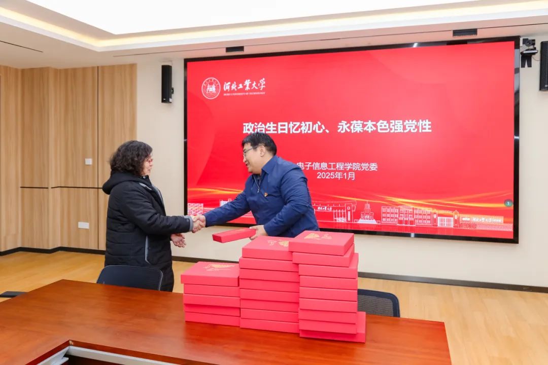 活动最后,由党委书记赵其波为党员们赠送纪念品。