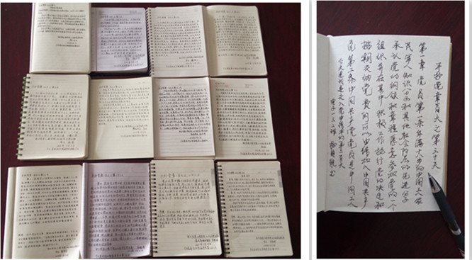 一本本笔记体现出我院学生党员的责任与担当,也体现出我院威廉希尔“知行合一,止于至善”理念的传承。党委书记任福战同志强调:“通过此次活动,开拓了学生党建工作形式,提升了支部凝聚力。在接下来扎实推进“两学一做”学习教育系列工作中学院党委会重实效、讲方法、求创新,充分发挥学生支部战斗堡垒作用。”