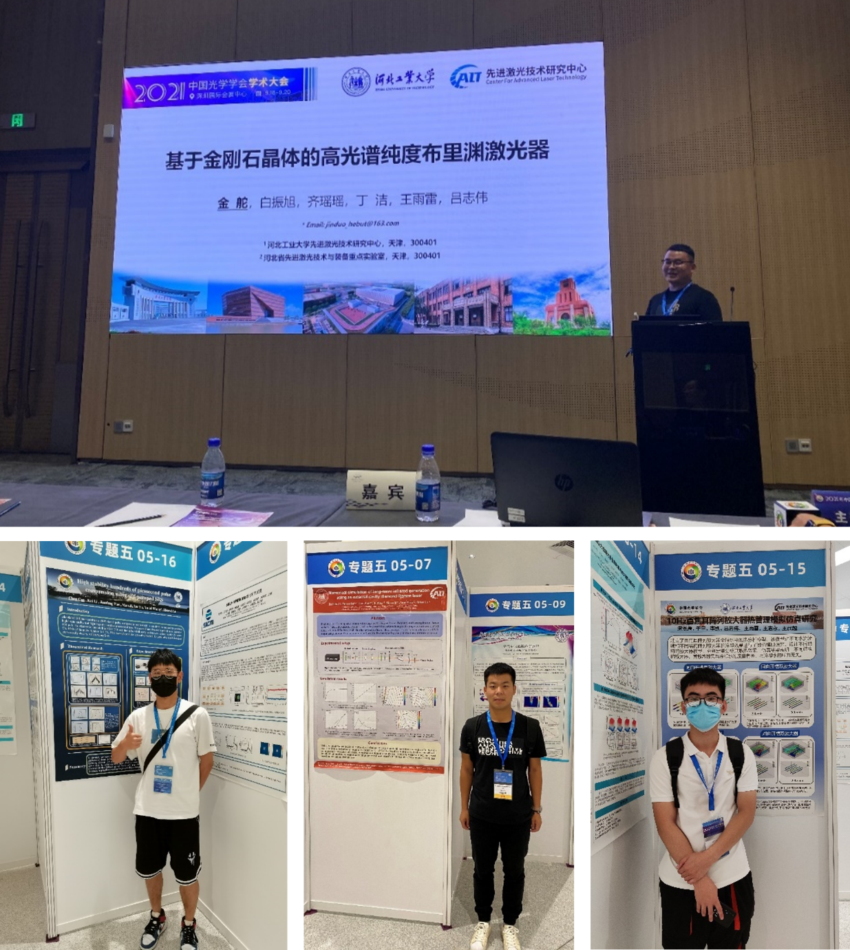 开幕式后,我院多名研究生参加了后续的中国光学学会学术大会的学术交流活动。中国光学学会学术大会作为国内顶级的光学学术交流盛宴,每两年举办一届,会议包括邀请报告、口头报告以及张贴报告多项交流方式,其涵盖主题丰富、参与人数众多,各界参会人员共同分享前沿光学技术,探讨技术成果转化之道。我院金舵博士在会议中做了题为“基于金刚石晶体的高光谱纯度布里渊激光器”的口头报告,曹晨博士、以及硕士研究生陈晖和宋长禹同学进行了海报张贴,在会议中促进了我校分会与其他学术组织及科研单位的交流、学习、合作。