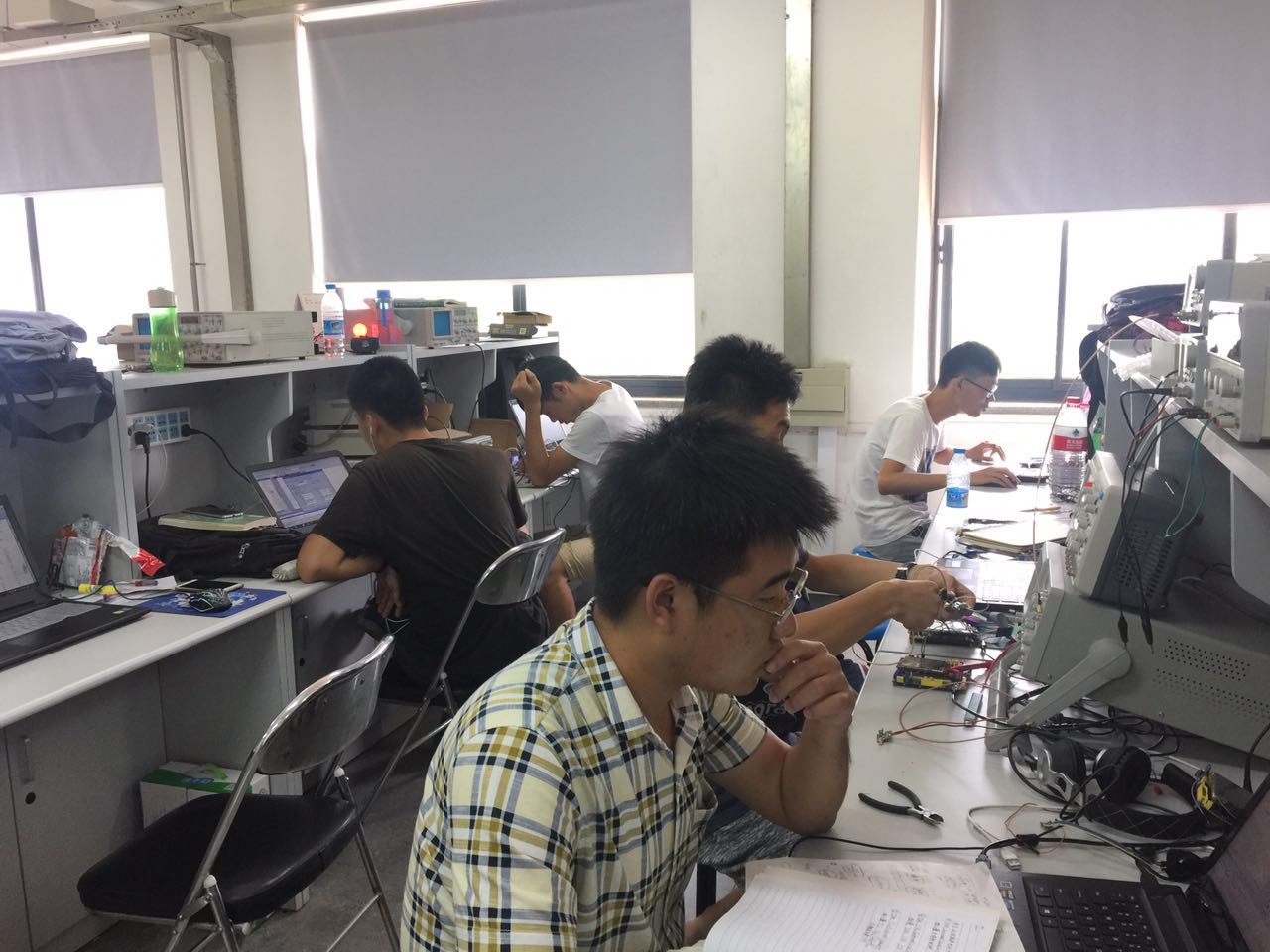 全国大学生电子设计竞赛由教育部和工信部主办,为我校A级竞赛。学院领导对此次大赛异常重视,在培训场地、器材等方面给予充分支持。7月12日至8月8日,在苏彦莽、闫林、宋涛、曾祥烨、徐晓辉、郭志涛老师的悉心指导下,参赛学生进行强化训练,以充足信心迎接此次大赛。预祝我院参赛团队在此次大赛中取得优异成绩。