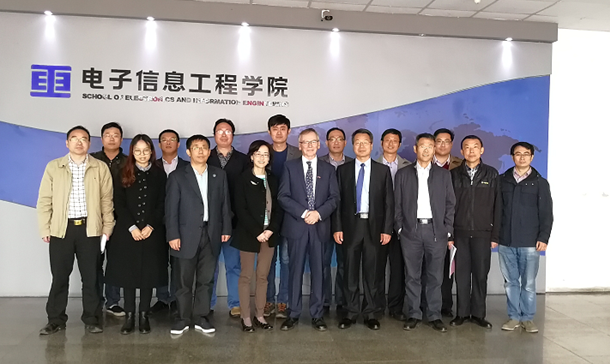 然后,william威廉中文党委书记任福战副教授、院长周建伟教授、副院长高振斌教授、通信学科方向责任教授刘剑飞教授、夏克文教授、周亚同教授、郑宏兴教授及学院骨干教师代表与来访人员进行了座谈。会上,周建伟院长对各位客人的来访表示热烈的欢迎,刘剑飞老师对学院基本情况及学科方向向客人做了英文介绍,沃特福德理工大学校长威廉.康纳利教授介绍了科研团队主持的研究课题情况,并提出可开展合作的领域。双方还就教师互访及学生的联合培养交换了意见。