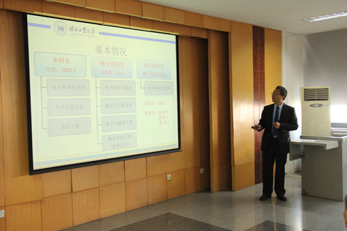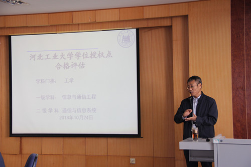 通信与信息系统、电子与通信工程硕士学位点合格评审邀请了国防科技大学唐朝京教授、北京大学王子宇教授、北京理工大学陈禾教授、同济大学赵晓群教授、南开大学孙桂玲教授、中国联通天津分公司曹俊忠高级工程师为评审专家,副校长刘兵、学院党委书记任福战、院长周建伟、副院长高振斌、武一和学科带头人及骨干教师参加了评审会,会议由研究生院副院长刘双乐主持。刘双乐副院长首先介绍了与会专家领导,刘兵副校长致欢迎词。学科负责人刘剑飞教授做通信与信息系统、电子与通信工程两个硕士学位点的评估汇报。