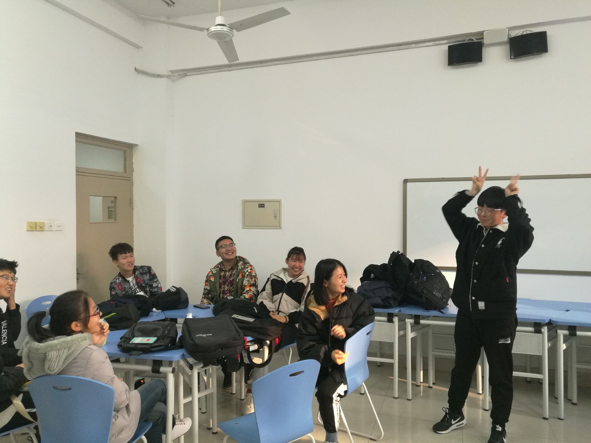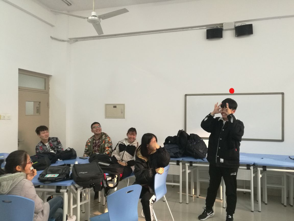 第一部分是热身游戏:刮大风。激烈却不失礼貌的争抢座位,发自内心的笑声,被淘汰后精彩的才艺表演,将氛围带入一次又一次的高潮。第二部分我们让大家不借助任何通讯工具,不借助语言,按照生日排序并分组,然后选出组长。第三部分我们进行了小组成员内轮流问答,或被问到个人理想,或被问到今后打算,或被问到私人情感,一个个刁钻而又不失风度的问题再次加深了同学们之间的了解。第四和第五部分,大家填了进入大学后的“五个最”和大学生生活拼图,先是小组内的或吐槽或倾诉或展望未来,再是小组选代表总结组内成员内容,此举让大家再一次确定了新目标,也让同学们互相借鉴,共同完善,共同进步。
