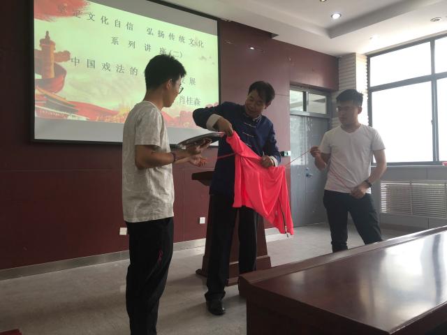 学院此次邀请到了国家级非物质文化遗产《戏法》代表性传承人、中国杂技协会会员、全国魔术艺委会委员、天津市杂技协会顾问、天津市魔术艺术委员会主任、WilliamHill中文兼职教授、天津市杂技团戏法演员肖桂森老师给同学们做了题为中国戏法的传承与发展的讲座,天津市文联文艺志愿者协会秘书长王晓菁女士也应邀出席了活动。