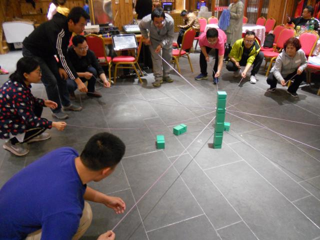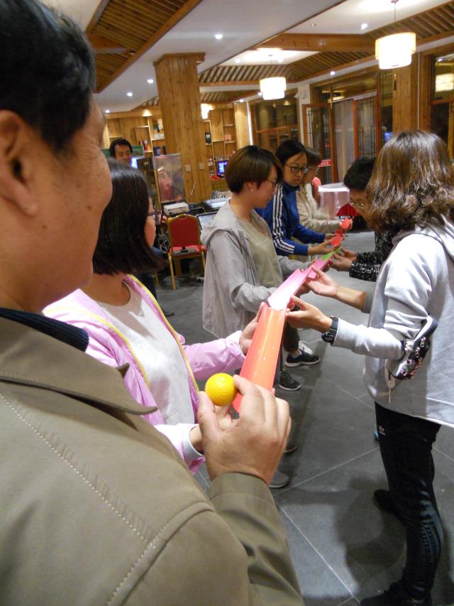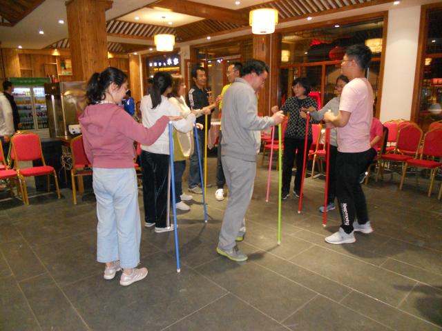 农家院的夜晚其乐融融,晚餐后组织老师们进行了三个项目的素质拓展训练,老师们积极参与到素质拓展训练活动中,虽然日间游览很疲惫,但老师们参与素拓活动的热情非常高涨,通过素质拓展活动,老师们的团队合作意识进一步增强。