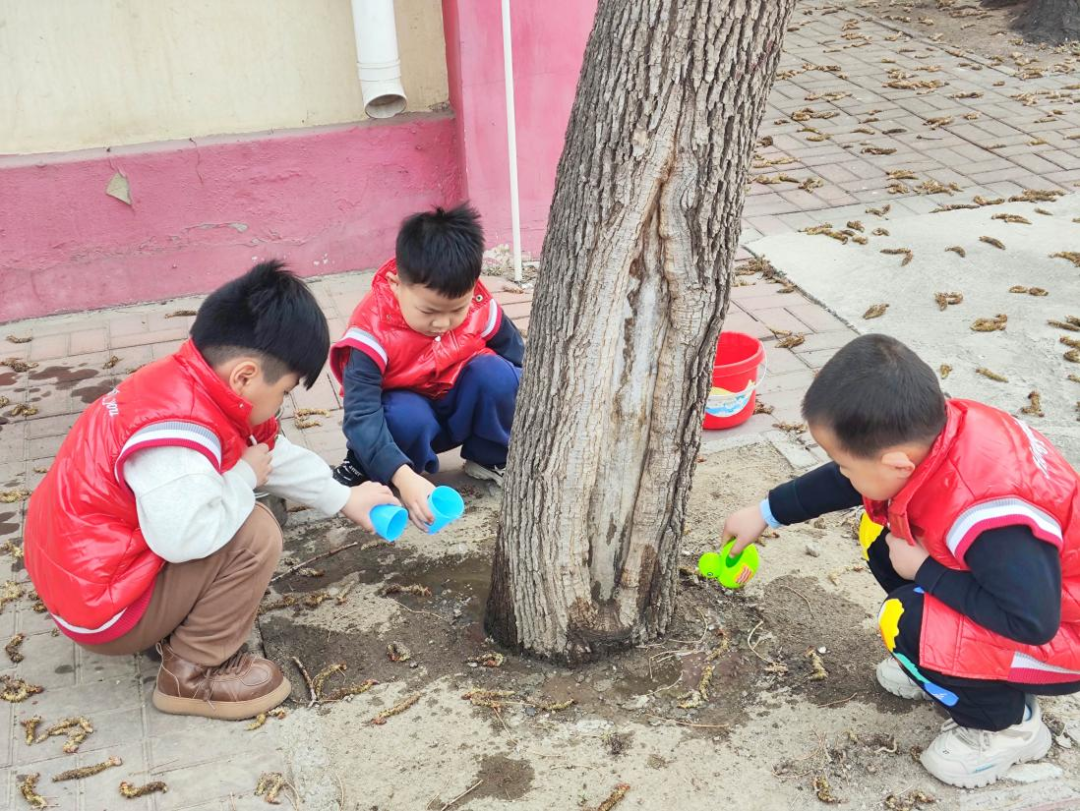 在户外,一场为树木浇水的活动正在温馨上演。孩子们为树木浇水,他们用小小的行动,表达着对大自然的热爱和对树木的呵护。