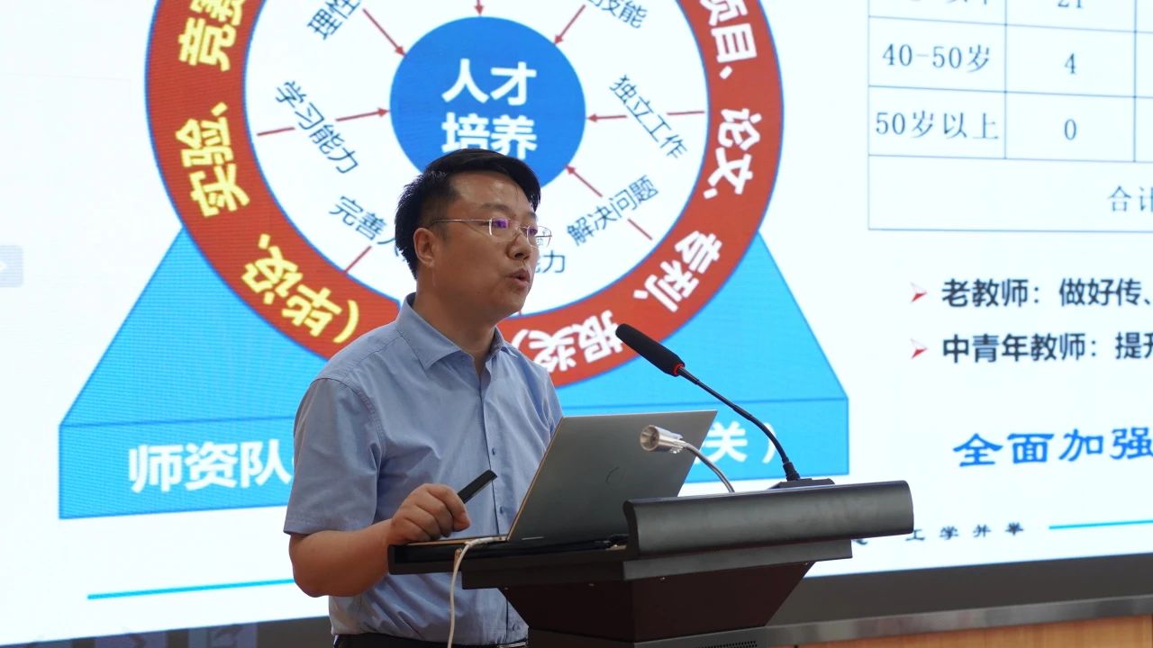 本次大会还邀请到了机械工程学院的科研领军人物——张宗华老师,张老师展示了自己的科研成果对于学术发展和技术创新的贡献,分享了科研和培养研究生过程中的心得体会,在座的每位教职工聆听后都感悟颇深。