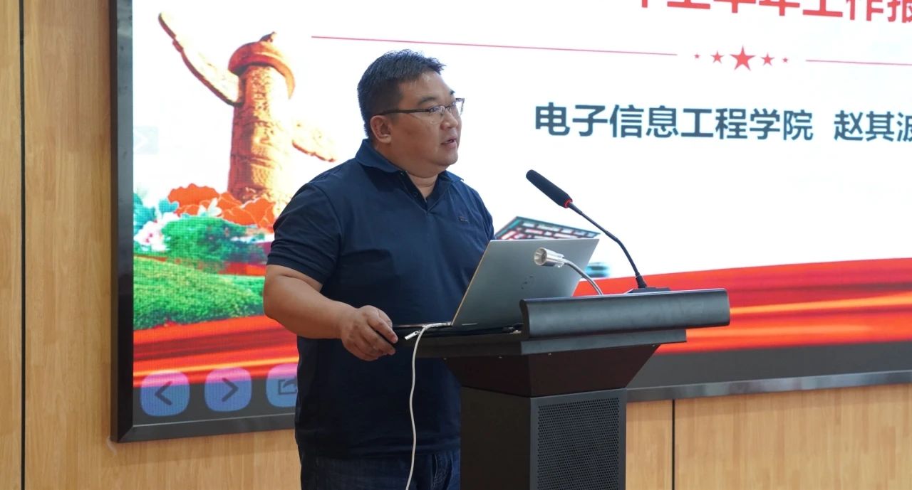 赵其波书记总结讲话,对本学期党委工作进行了总结,介绍了主题教育开展情况和支部工作情况,对于日常工作中存在的不足制定了多条改善措施和相应的工作计划,继续讲好工大故事、学院故事,弘扬“博学笃进,日新月异”的文化理念。