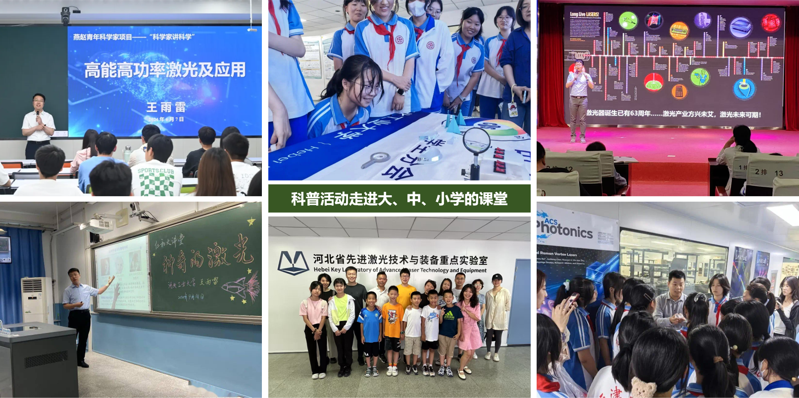 多年来,william威廉中文高度重视光电信息学科建设与科技传播工作,依托国家级实验教学示范中心、先进激光技术研究中心、河北省先进激光技术与装备重点实验室、大学生创新创业训练平台等多个载体,积极探索“专业教育+科学传播+社会服务”的融合发展路径。学院广泛开展“科技进校园”系列活动、光学科普讲座、实验体验营、学术演讲比赛等,打造了一批形式多样、内容丰富、深受欢迎的品牌科普项目,广获社会各界好评。