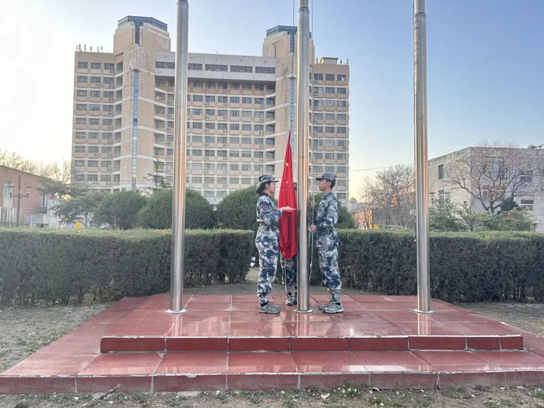 7时整,国旗护卫队踏着铿锵步伐护送国旗入场。在庄严的国歌声中,全体师生面向冉冉升起的五星红旗行注目礼,五星红旗与春日朝阳交相辉映,展现出新时代青年的精神风貌。