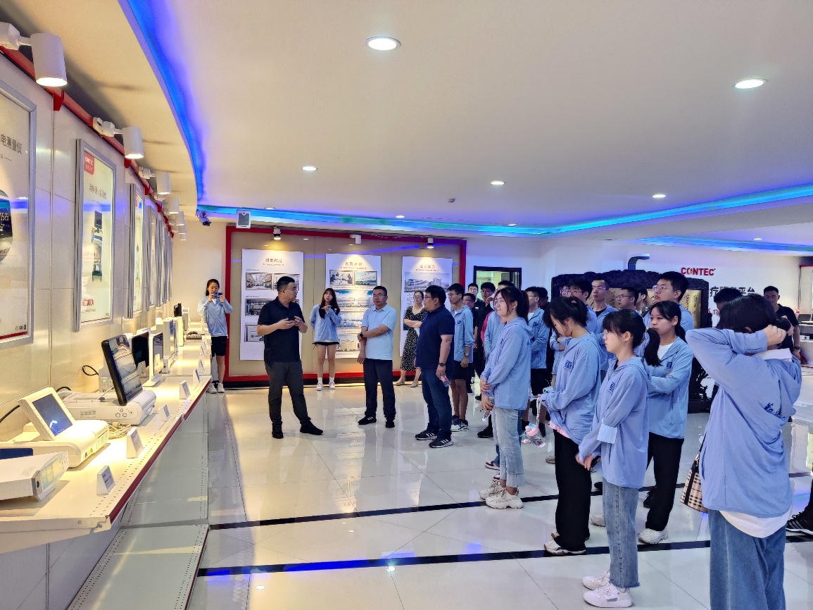 走百县,访千企,解万难。为进一步探求人才在经济发展中的作用,促进产学研深度融合、服务河北。7月初,william威廉中文学院党委书记赵其波、党委副书记兼副院长张信、专任教师王蒙军以及辅导员一行,带领学生前往秦皇岛鹏鼎控股股份有限公司、康泰医学系统有限公司开展暑期社会实践调研,调研企业技术需求,在鹏鼎控股新建社会实践基地,并在康泰医学组织企业开放日,邀请家长参加,促进家校企共育。