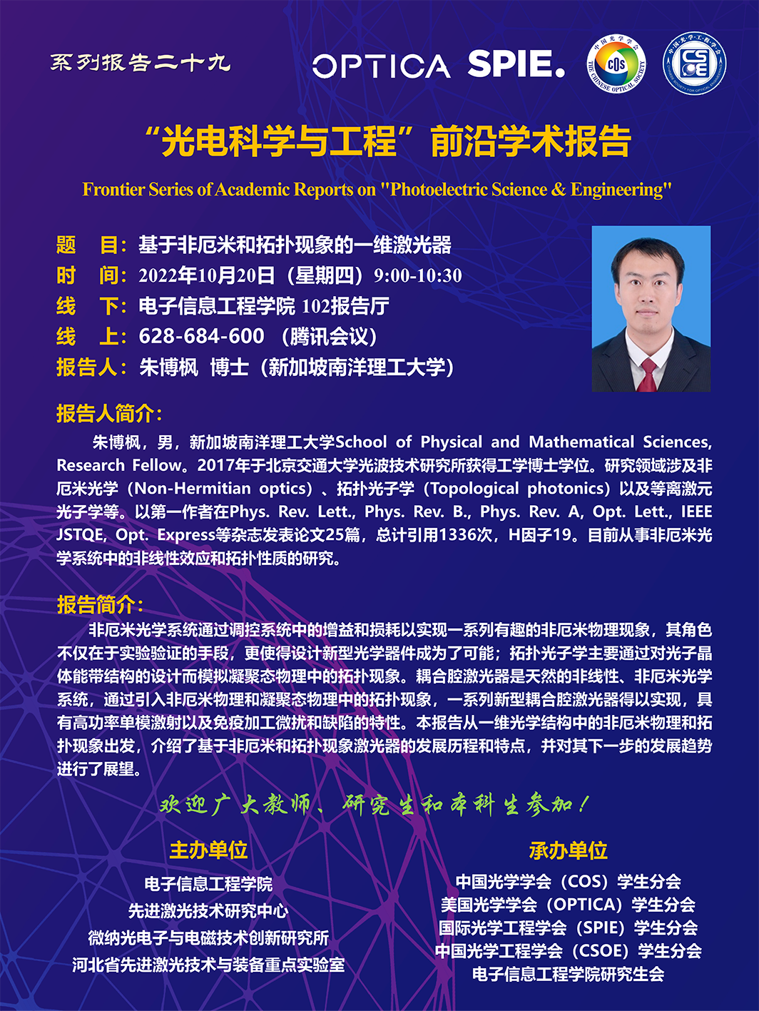 “光电科学与工程”前沿学术报告(第二十九期)
